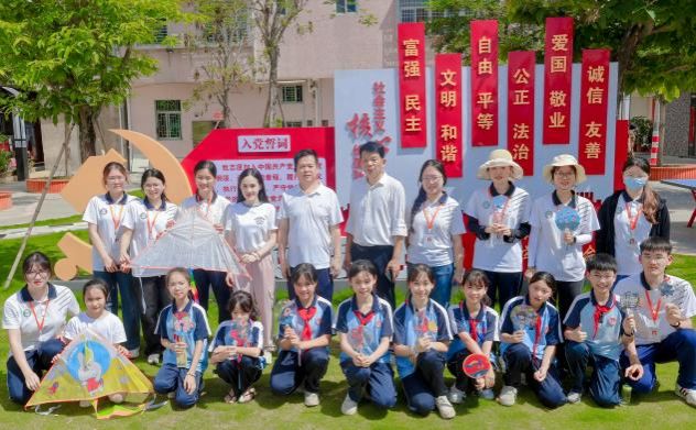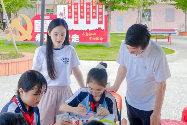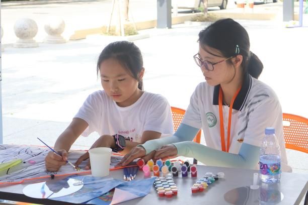 在龙湖区新海街道东南村党建文化广场,东南村两委干部与化工“百千万工程”突击队师生一同开展了“AI赋能·自然共绘”活动,龙湖区亿信小学师生代表参与活动。在突击队同学的协助下,孩子们借助AI算法的辅助,将东南村的“连心榕”、莲田风光等特色风光绘制在风筝和扇面。“好风凭借力,送我上青云。”科技自然的和谐共生在“百千万工程”引领下生动呈现。