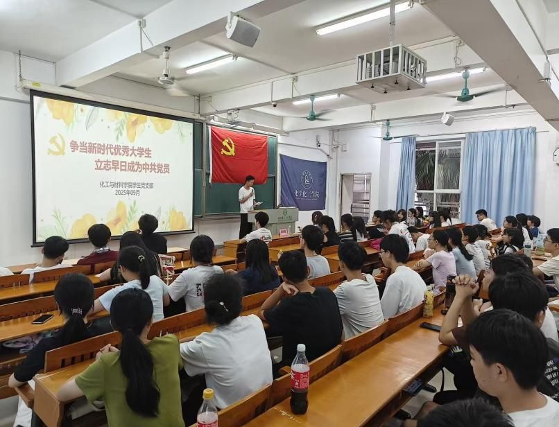 09月09日,学生党支部书记在杨钊杨勋楼309课室为学生进行入党教育指导,围绕“为什么入党、入党做什么、怎样争取入党”三个维度,系统梳理党员标准、发展流程与时代担当,并现场解答新生关切。随后,学生第一党支部书记刘亚宁介绍学院特色党建活动,鼓励各位新生积极参与新一届及地宣讲,把个人化学梦融入数字中国大场景,用青年语言诠释“数智+化学”的无限可能。