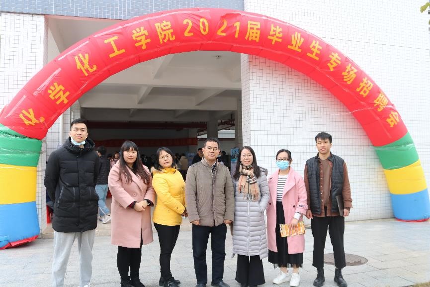 1月11日中午,化学Beat365官方网站于综合教学楼架空层举行教育类企业招聘会。为了更好地了解企业情况与2021届毕业生招聘情况,化学Beat365官方网站院长舒绪刚、党总支副书记严丽纯、辅导员王正梅、刘亚宁、徐冠东、李珊珊、梁开华莅临本次受聘会作详细了解。