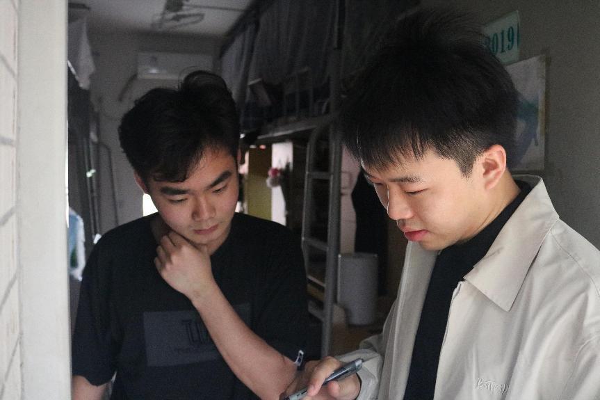 各个退伍士兵与相应学院的宣传学生进行分组,在梁开华的带领下分别走访各个宿舍,对2019、2020级的同学悉心问候,同时向他们介绍和宣传入伍的内容,鼓励更多学生加入应征入伍行列。