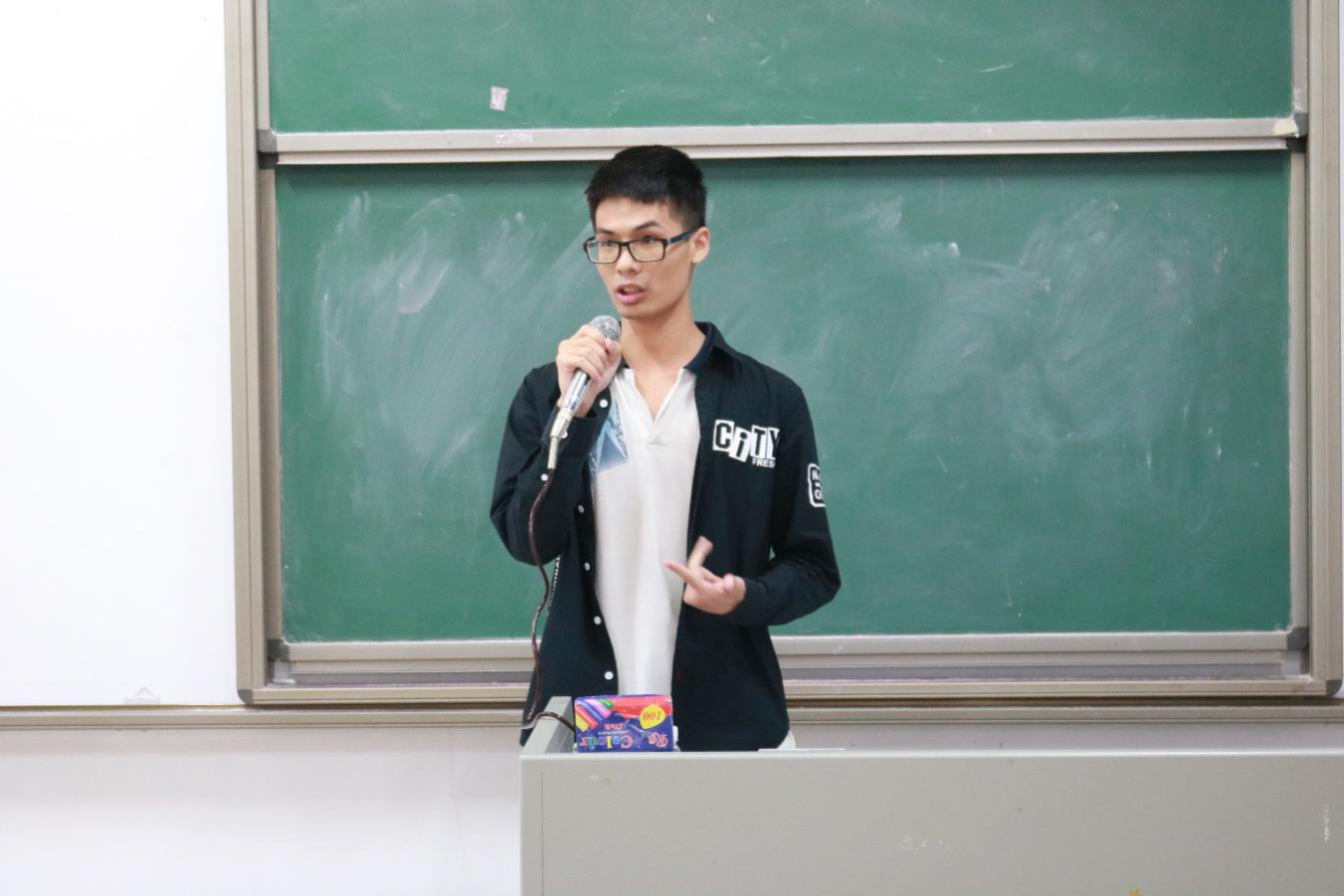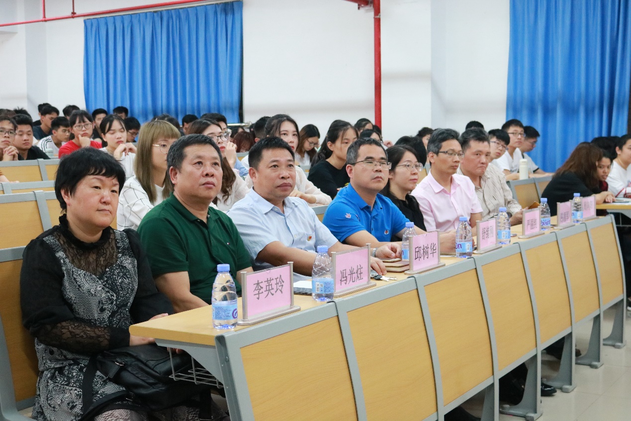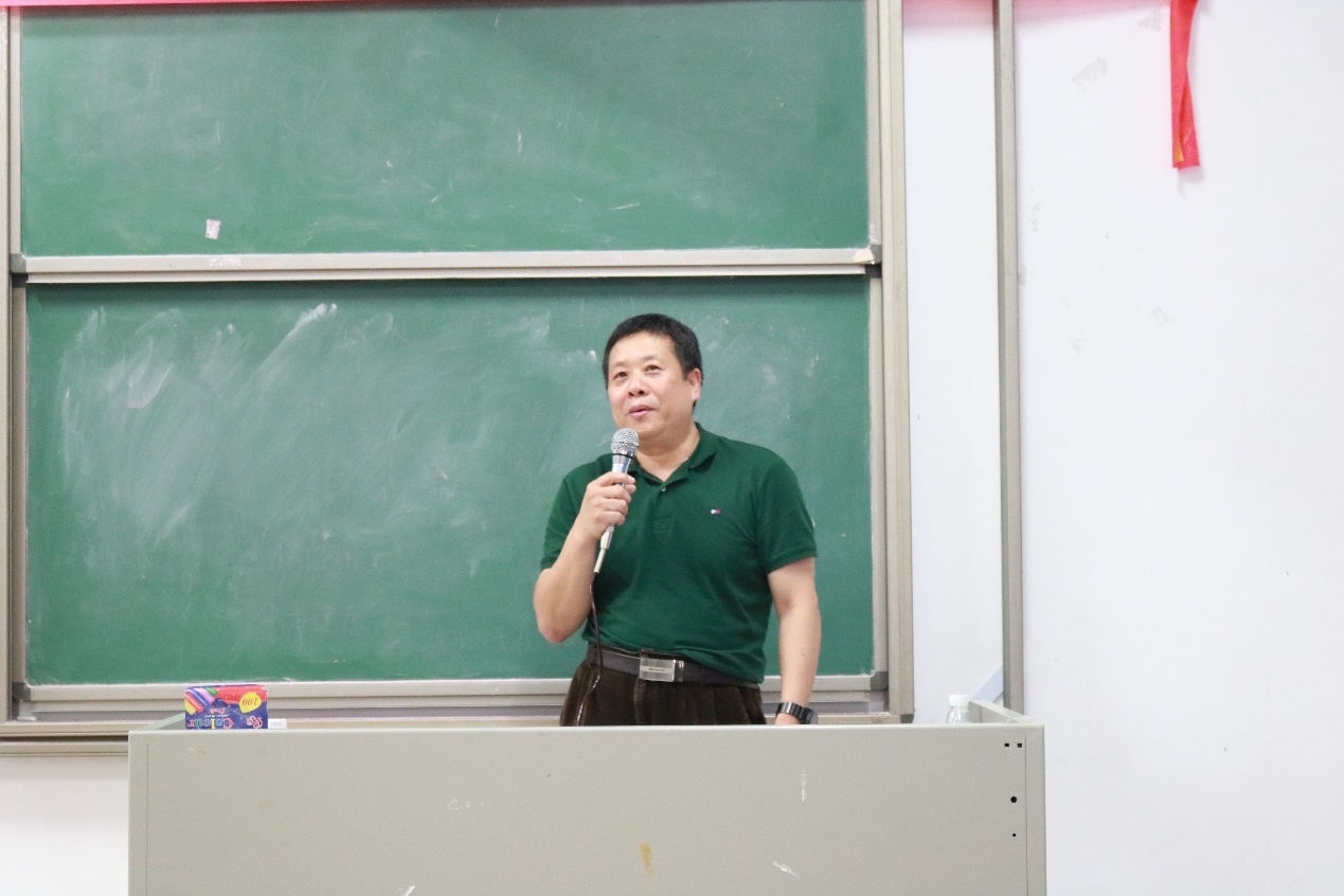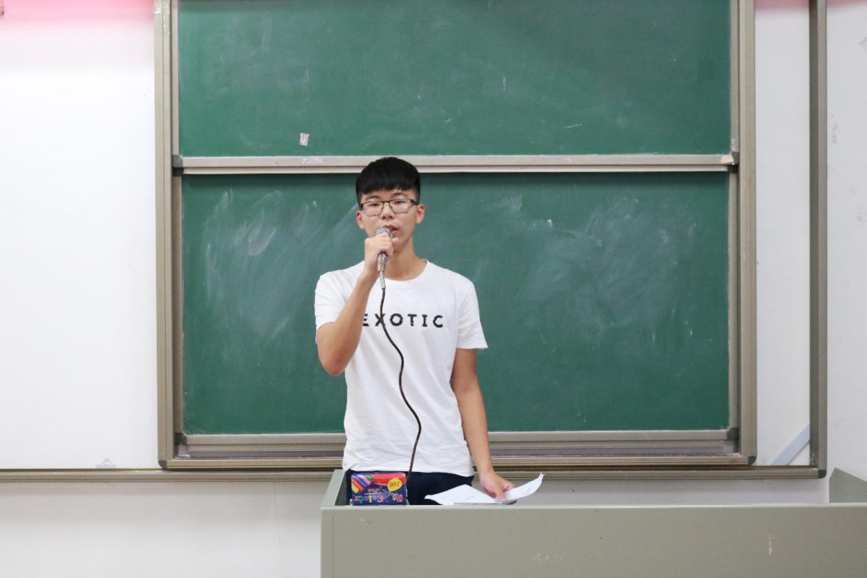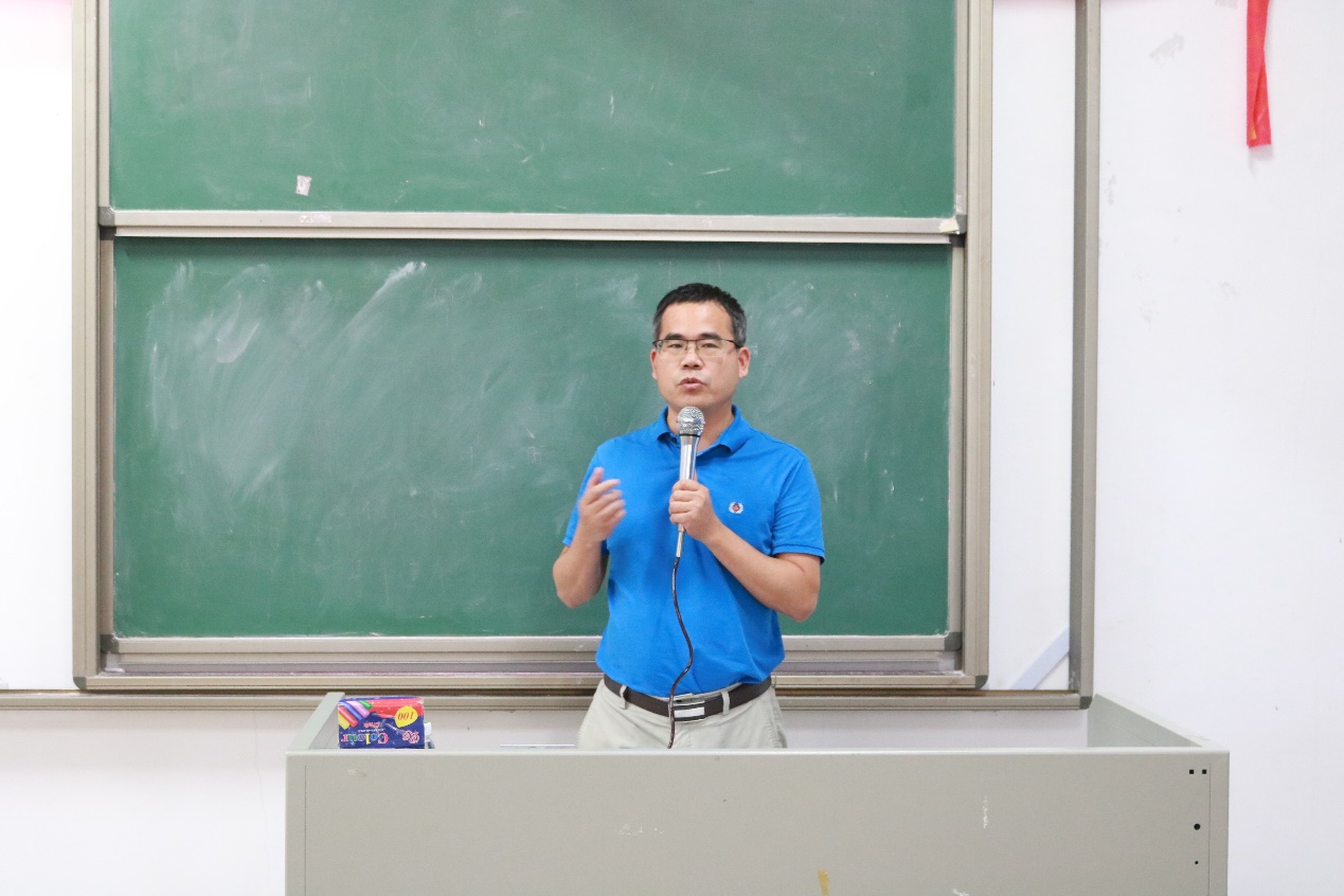 首先是典礼的第一项议程,由15级创新班班主任冯光炷老师讲话。冯老师点出成立创新班的优点是有益于提升老师、学生们的科研能力和学习能力,其中他还提到创新班成员的考研达标率高于学院整体考研达标率。最后冯老师希望更多的同学能够积极踊跃参与。