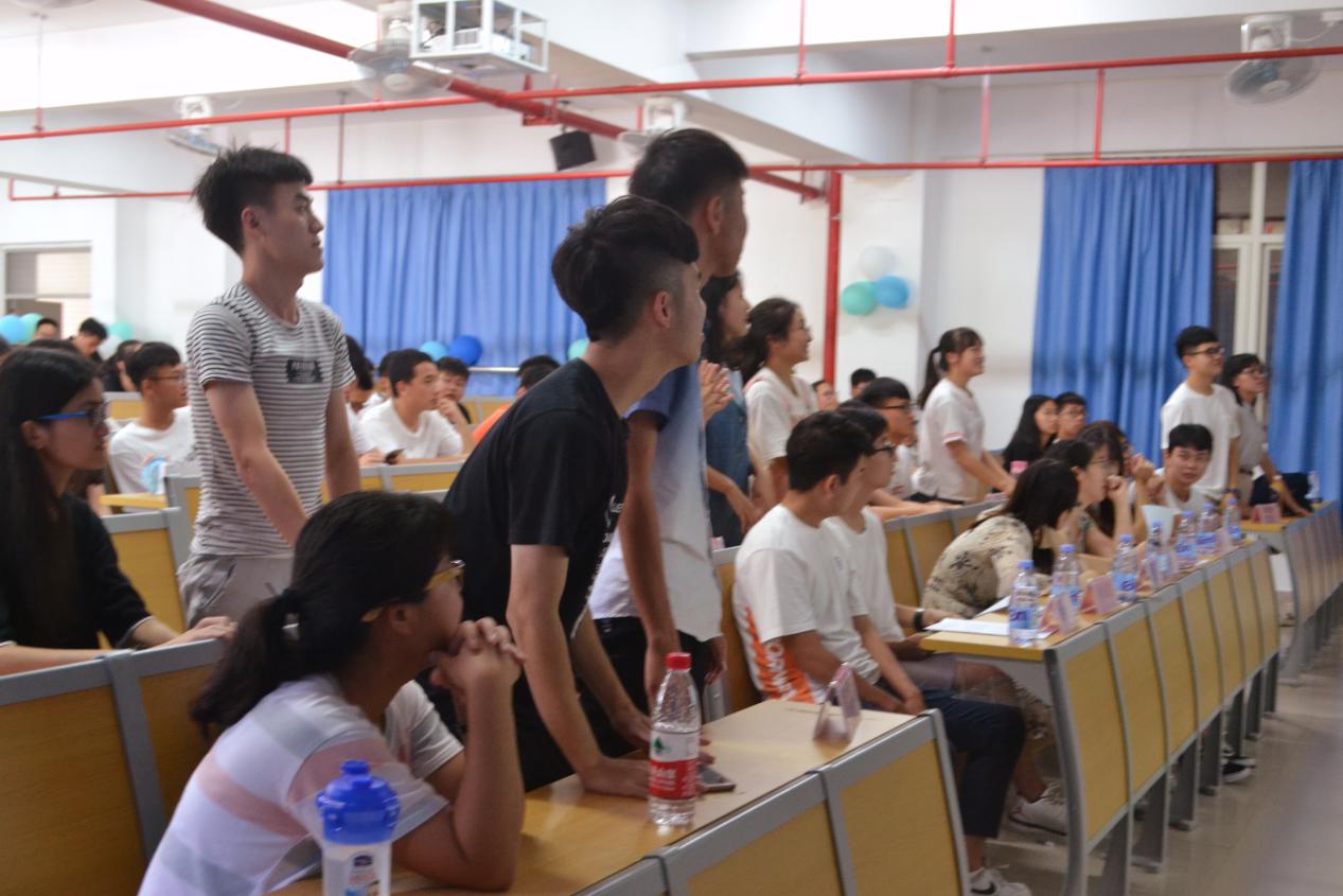 比赛的第一个环节需要各选手独当一面,即要求各选手在没有队友帮助的情况下,独立完成自己的题目。而选手是否能顺利完成题目则决定了他们能否进入下一环节。接着进入的是抢答环节,主持人公布题目后,各小组开始抢答。每个参赛小组都不甘示弱、争分夺秒抢答。最后一个比赛环节是必答题环节,每组同学每轮需选择两道分值不同的题目进行作答,该环节共进行两轮。此环节表现最突出非“应急小组”莫属, 他们挑战了难度最高的题目,且用了最短的时间答对题目,其出色的表现获得了来自全场的热烈掌声。比赛环节结束后是现场观众互动环节,在场的同学们都积极踊跃地参与到游戏中来,将现场的氛围推上高潮。