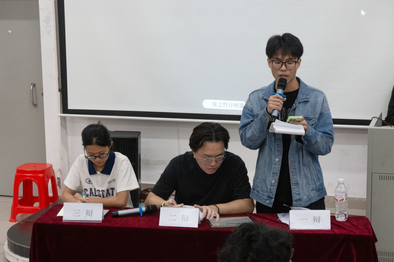 最后,由蔡惠容对今晚的辩论赛进行总结。她肯定了选手们出色的辩论水平,在比赛的过程中也看到了选手们自信激昂、风采出众的模样。同时,她指出辩论过程中不足的地方:语速过快,表达不够清晰,希望日后有所改正。她希望同学们能够客观看待问题,辩论思考,用辩论的思想去指导生活。