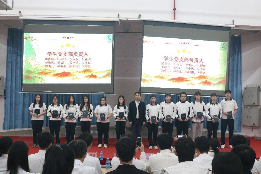 刘勇为学生党支部负责人梁哲林、叶林钦、李锦杭、吴颖欣、李晓君、蔡岱江、曾小满、吴菲晖、郑晓八、林春生、陈桢栩、李铭惠颁发聘书。
