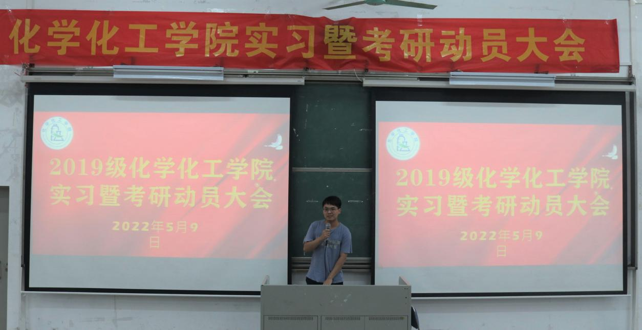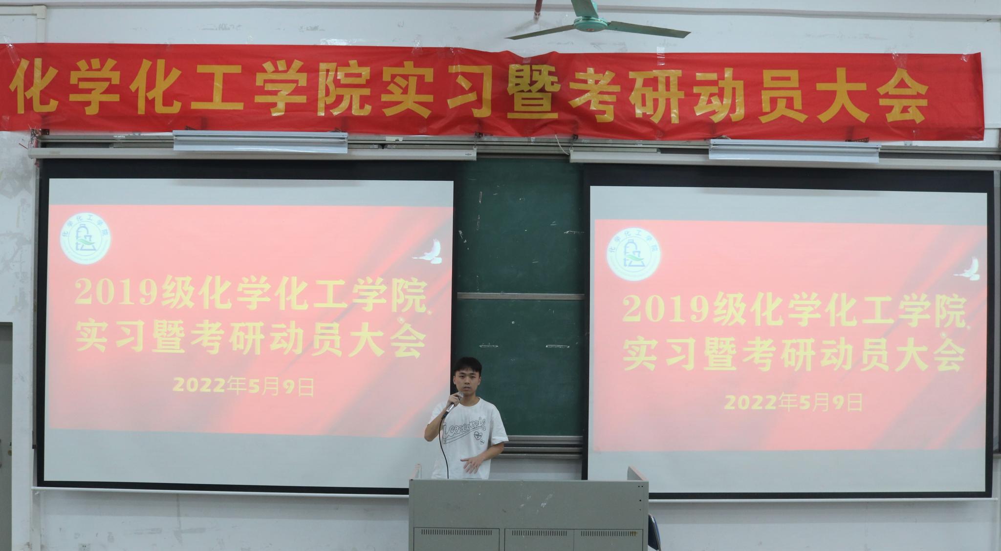 为了调动2019级实习和考研的积极性,5月9日下午,化学Beat365官方网站于白云校区D2小礼堂召开了2019级实习暨考研动员会,参加本次大会的有化学Beat365官方网站党委书记邱树华、副书记严丽纯,院长舒绪刚、副院长陈循军,辅导员刘亚宁、崔俊美,材料系系主任周向阳、副主任尚京旗,化学工程与工艺系系主任张步宁、副主任朱国典,实验中心副主任胡洪超,研究生代表及全体2019级学生。