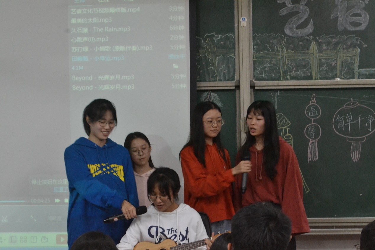 本次艺宿文化节首先是各宿舍代表通过PPT以及自制的手工艺品来展示各宿舍风采。其中,1-522的宿舍代表以风趣幽默的讲解吸引了现场观众的眼球,她们的宿舍手工品充分体现了她们是一个友爱的集体。在1-316宿舍的宿舍展示中,海报上各具特色的卡通人物、饱含感染力的视频,无不令在场观众羡慕,更是赢得了在场观众的极力赞赏。1-304、1-219、1-218、1-322、16-3019宿舍的宿舍风采以及手工品的展示也各有特点,各有精彩之处,赢得了在场观众热烈的掌声。