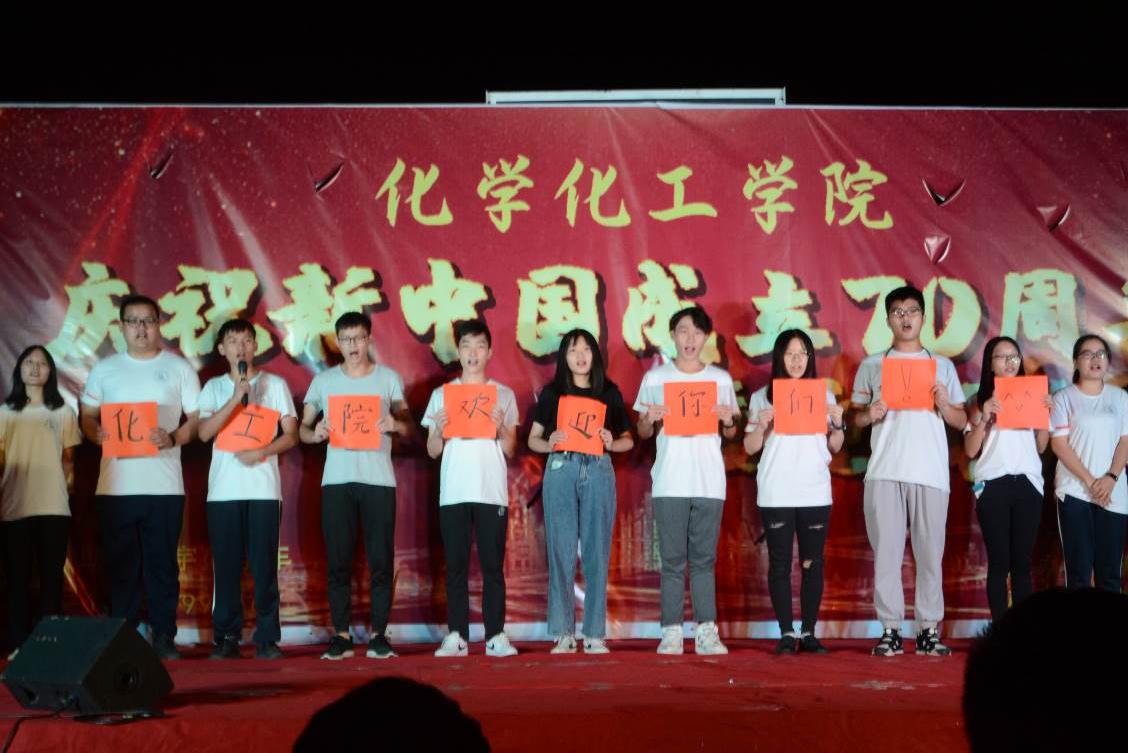 10月19日晚上,为庆祝新中国成立70周年,化学Beat365官方网站于白云校区新篮球场隆重举行“庆祝新中国成立70周年”主题迎新晚会。出席本次活动的嘉宾有化学Beat365官方网站党总支副书记严丽纯、辅导员潘耀宗、徐冠东、18届新闻中心主任林思淇、18届团委第二副书记温德健、校学生会办公室主任林伊纯、校艺术团代表苏晓威、院主席团、书记团、主任团及各兄弟学院学生代表。我院2019级全体新生参加了本次晚会。