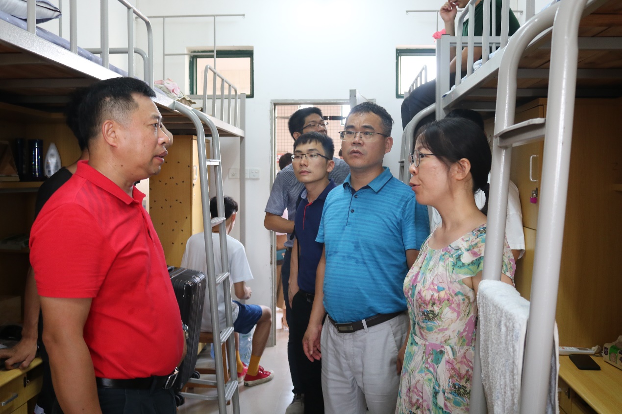 下午,我院党总支书记邱树华,院长舒绪刚,党总支副书记严丽纯,辅导员徐冠东老师以及2019级班主任老师团前往学生宿舍看望新生并了解新生入住情况,听取新生所提的意见并督促新生早点休息养足精神,以饱满的精神面貌去迎接开学第一课--军训。在我院领导、老师以及工作人员的努力下,我院迎新工作已顺利完成。
