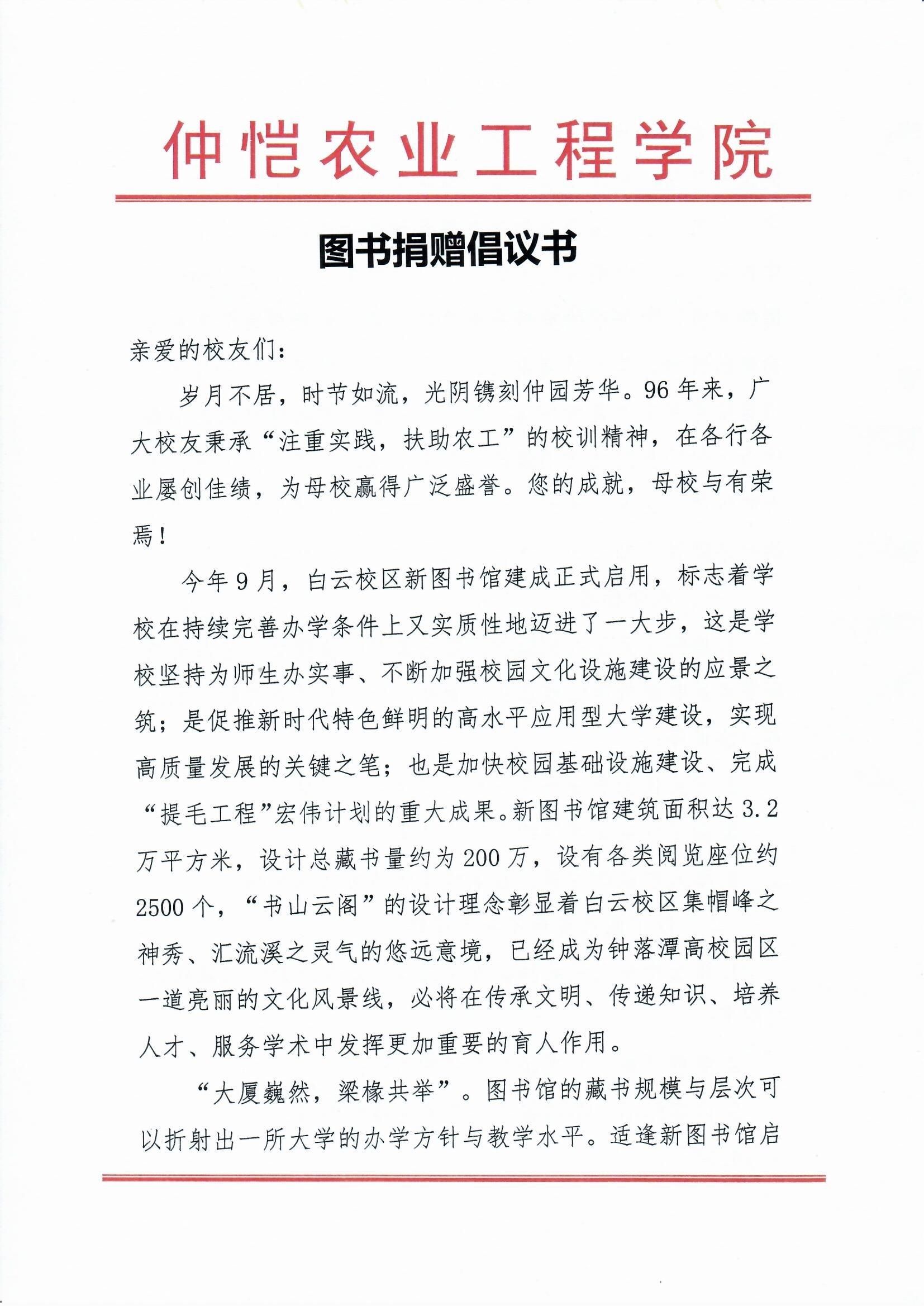 学校图书馆、校友事务部图书捐赠倡议原文如下: